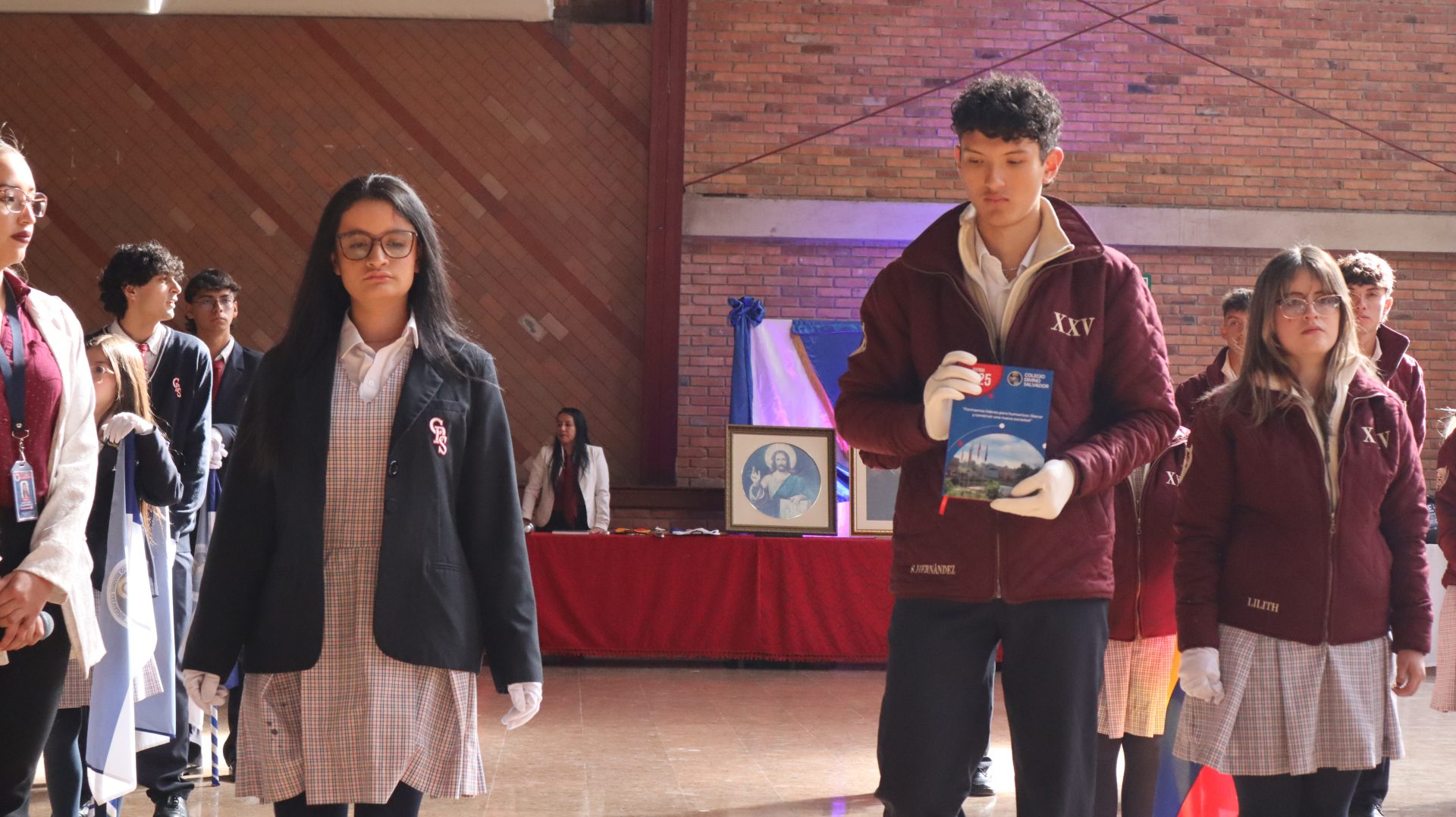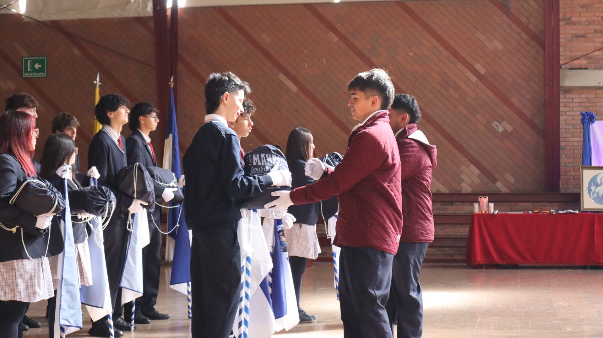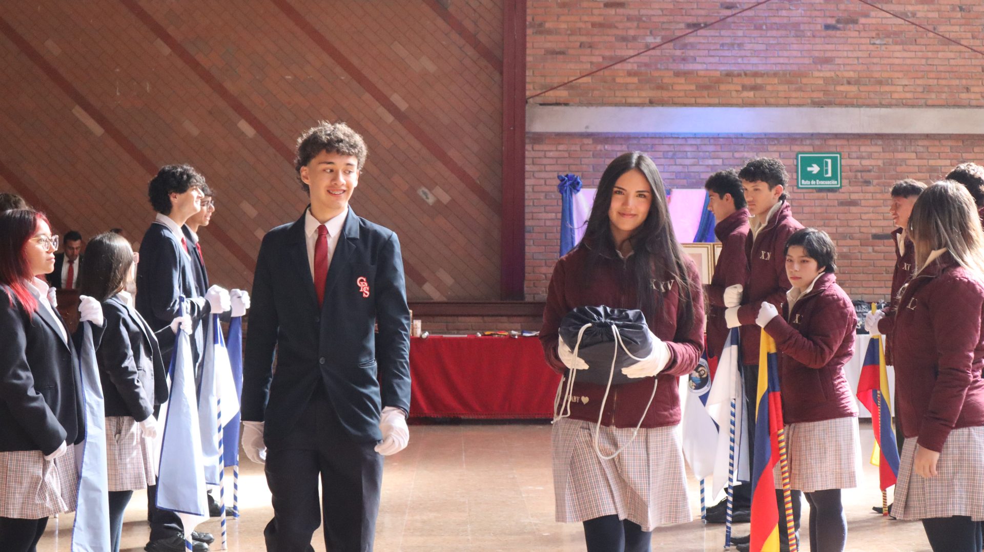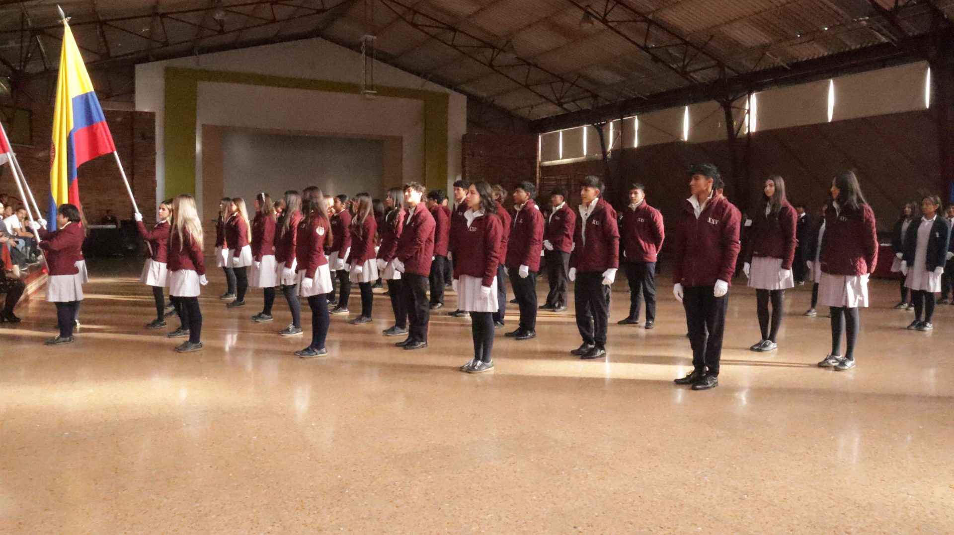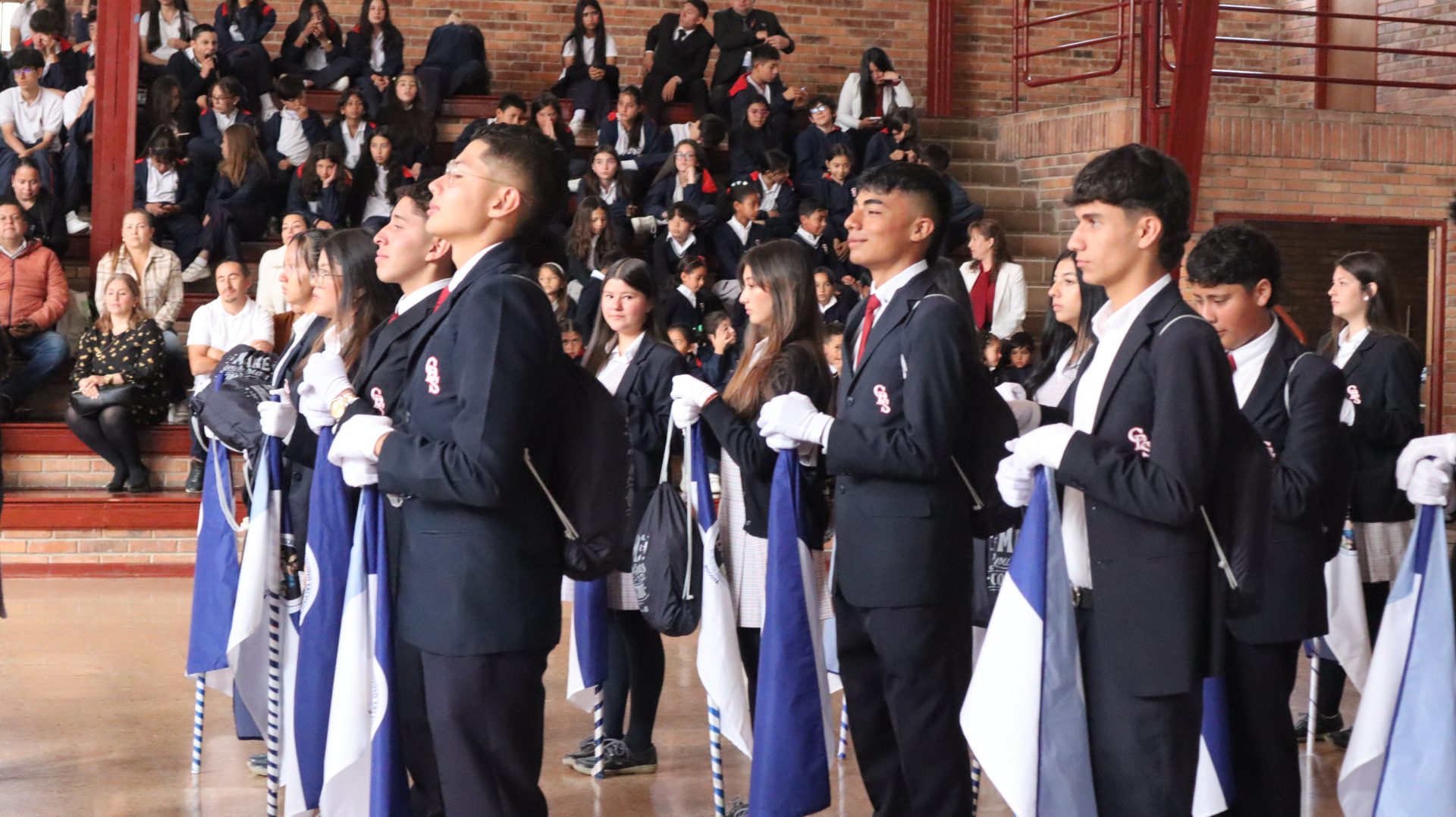 En medio de un ambiente solemne y fraterno, las banderas del Colegio, de Bogotá y de Colombia fueron entregadas con honor, recordando que cada una lleva consigo el espíritu de liderazgo, respeto y amor por la institución.